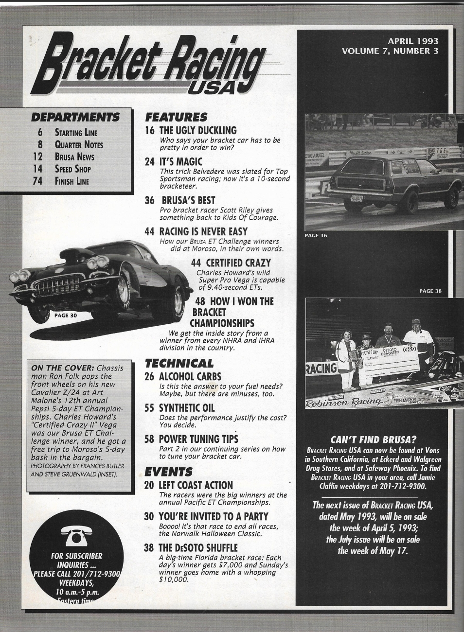 Reviews BRACKET RACING USA 1993 APR - ALCOHOL CARBS, BELVEDERE, SUPER PRO VEGA