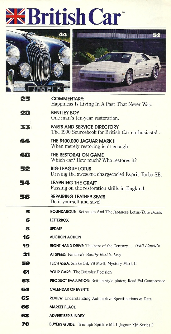 Reviews BRITISH CAR 1989 DEC - BENTLEY, JAGUAR MARK II, LOTUS ESPRITE, RESTO SPECIAL