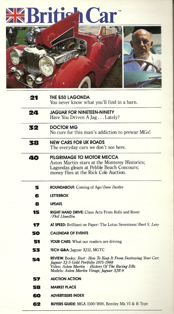Reviews BRITISH CAR 1990 FEB - LAGONDA, NEW JAGS, PRE-WAR MG'S, ASTON MARTIN