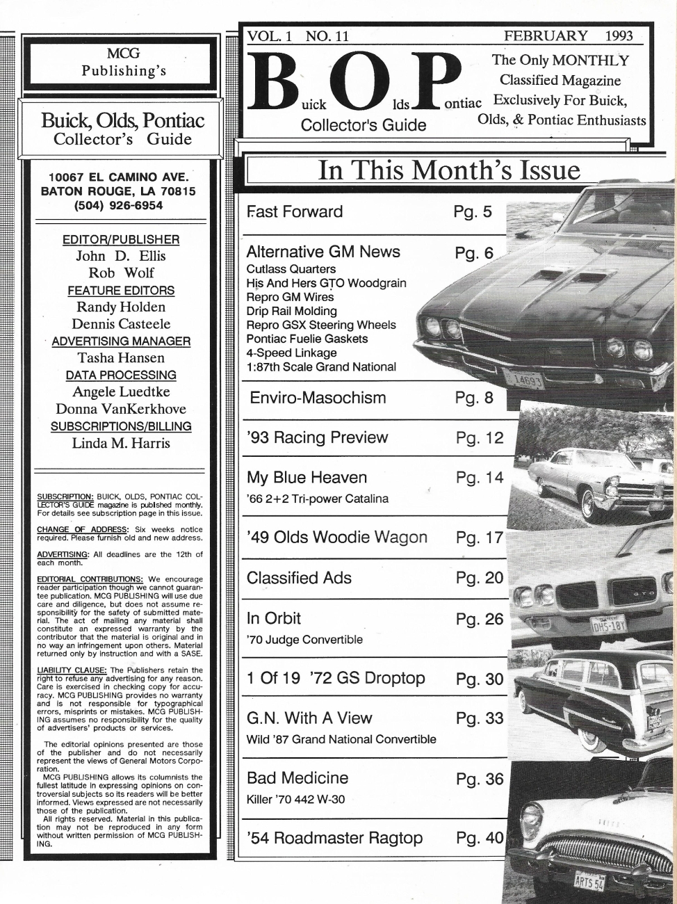Reviews BUICK OLDS PONTIAC 1993 FEB - '70 W-30 442, '54 ROADMASTER CONV, '49 WOODIE