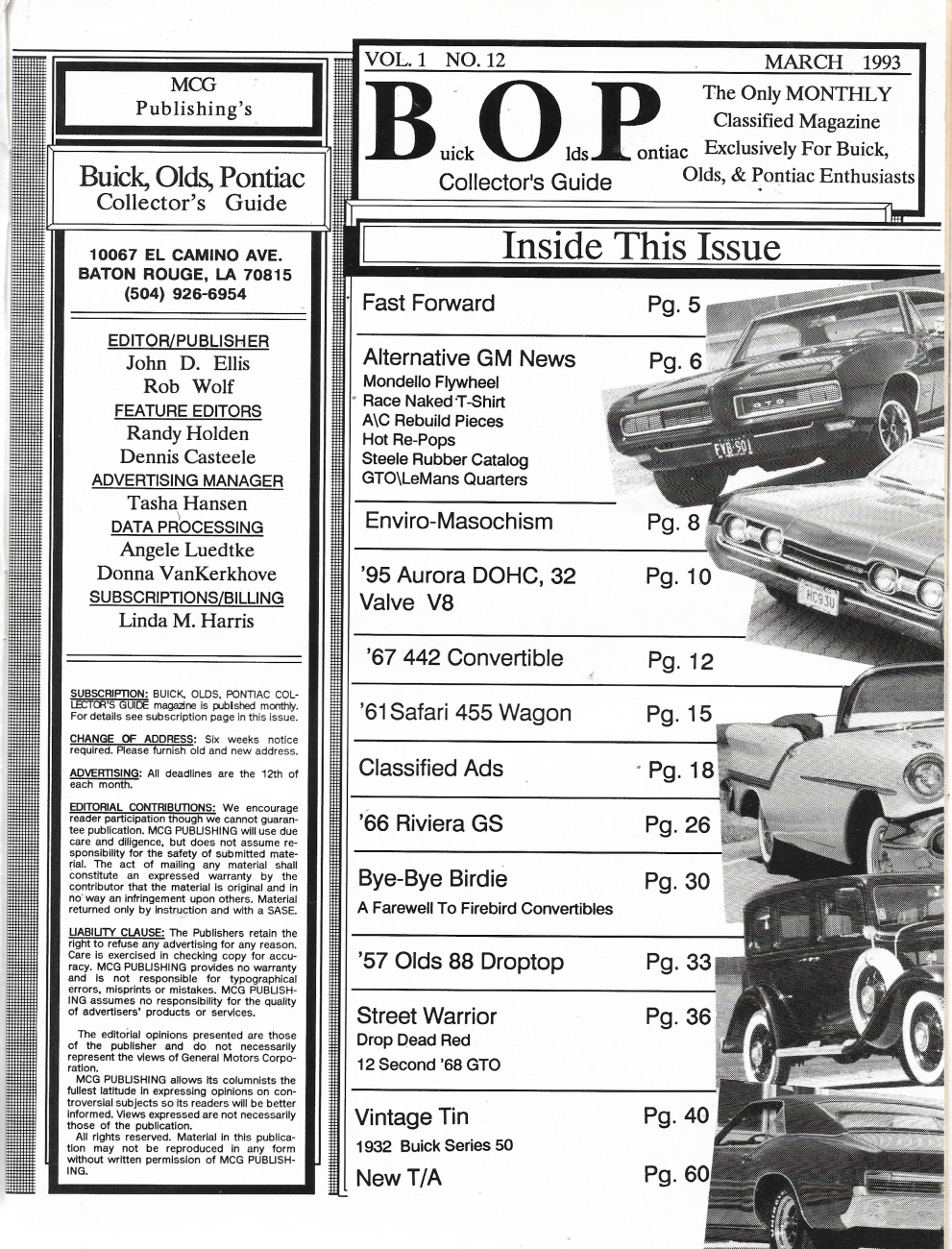 Reviews BUICK OLDS PONTIAC 1993 MAR - '68 GTO, '57 OLDS 88, '66 RIVIERA GS, '32 BUICK