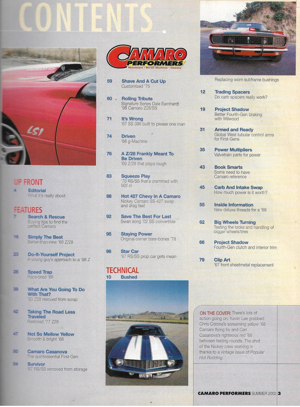 Reviews CAMARO PERFORMERS 2002 SUMMER - VINTAGE NICKEY SS 427, WHEELS, SUSP TRICKS