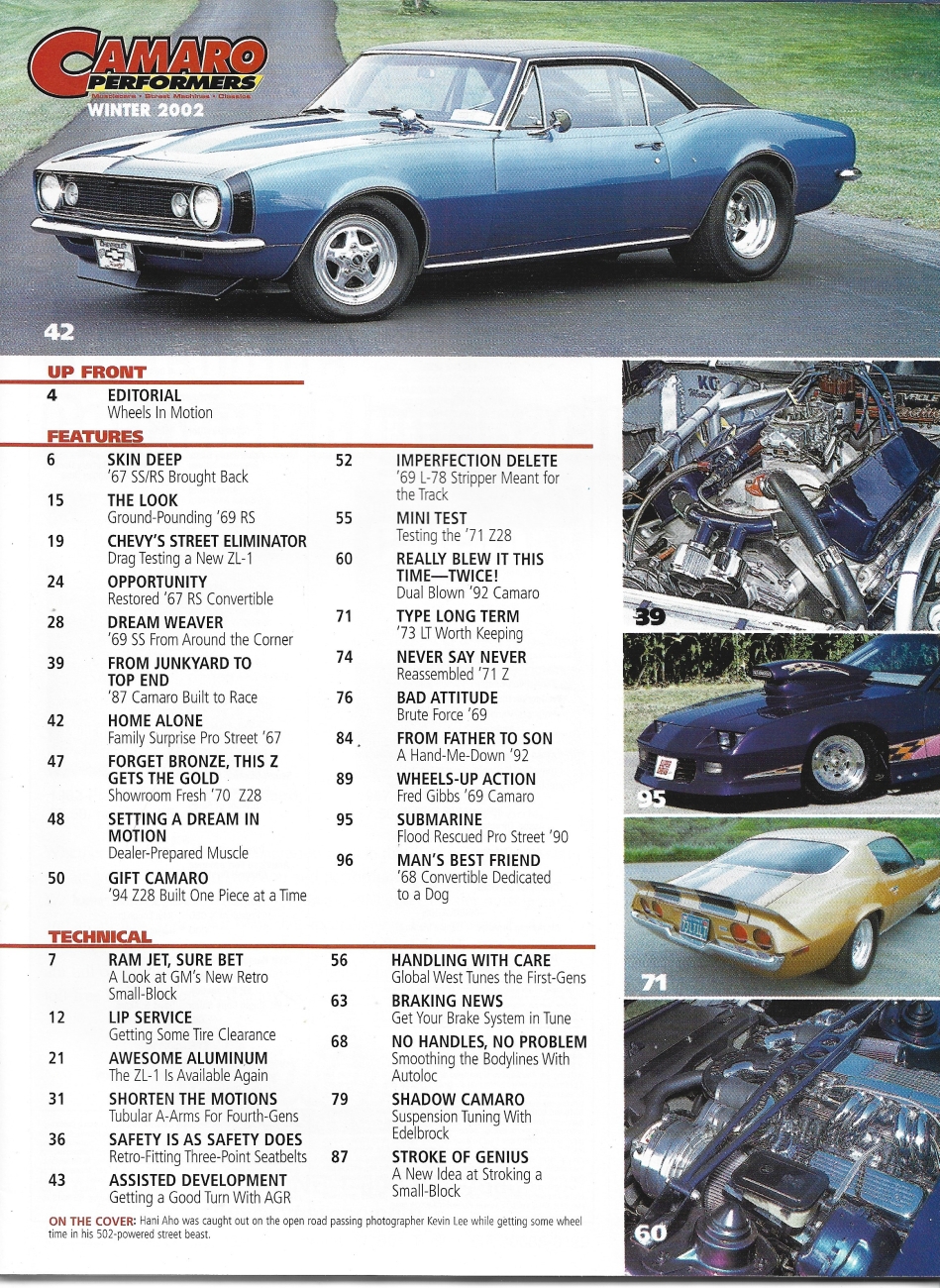CAMARO PERFORMERS 2002 WINTER - SUSP, BRAKES, 453 BUILD-UP, DRAG TESTS: 69 & 71