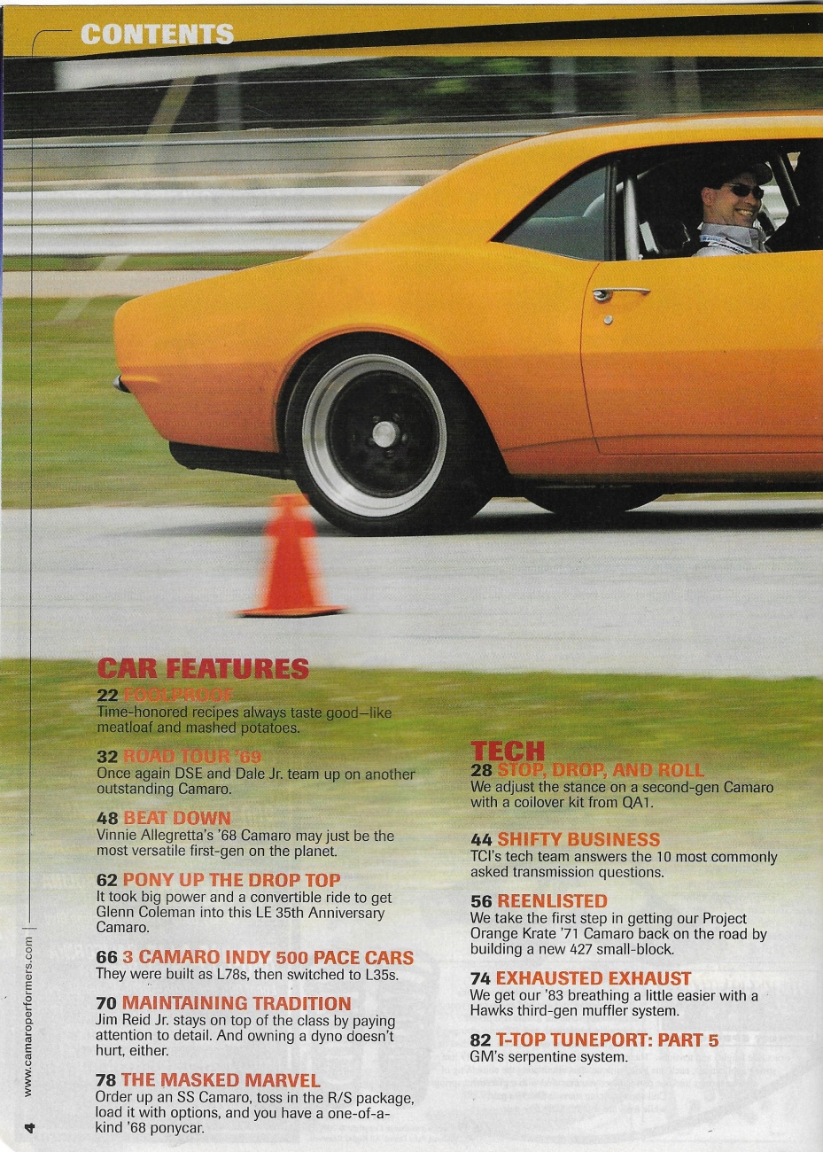 Reviews CAMARO PERFORMERS 2008 AUG - PRO TOURING, DALE JR '69, '68 RUNNING 10'S