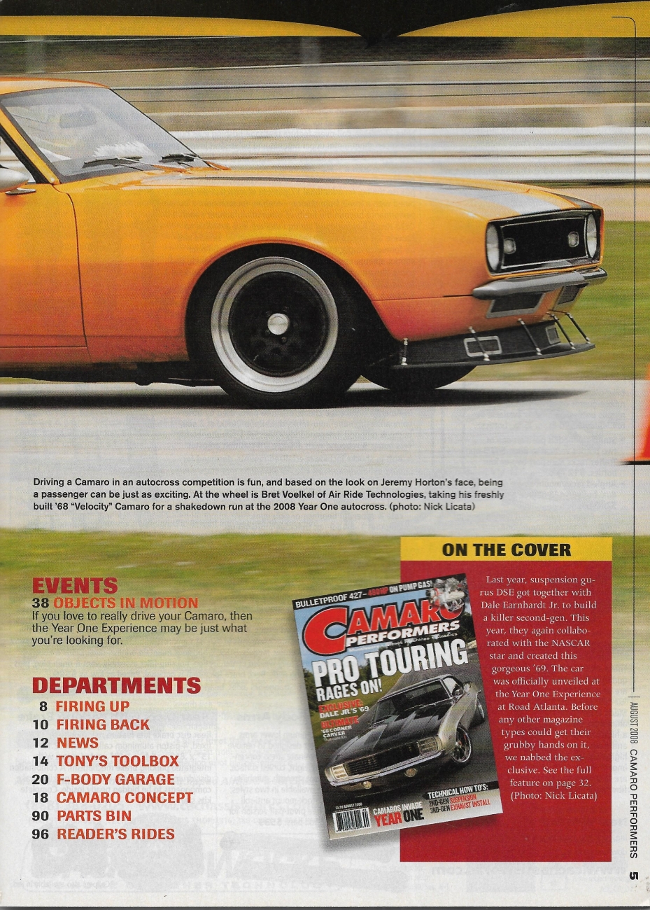 CAMARO PERFORMERS 2008 AUG - PRO TOURING, DALE JR '69, '68 RUNNING 10'S