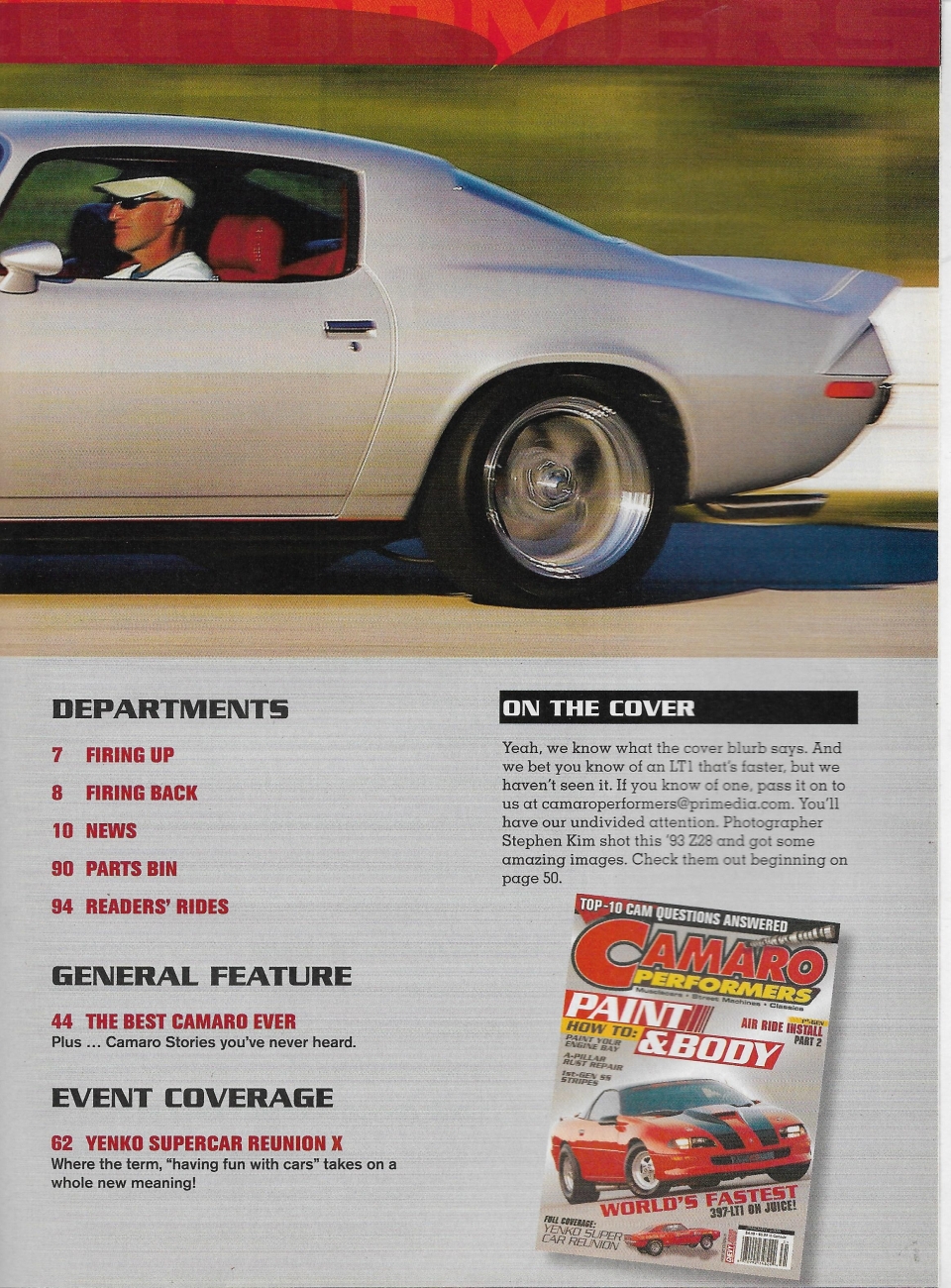 Reviews CAMARO PERFORMERS 2008 JAN - PAINT & BODY, SS STRIPES, YENKO REUNION, 397 LT1