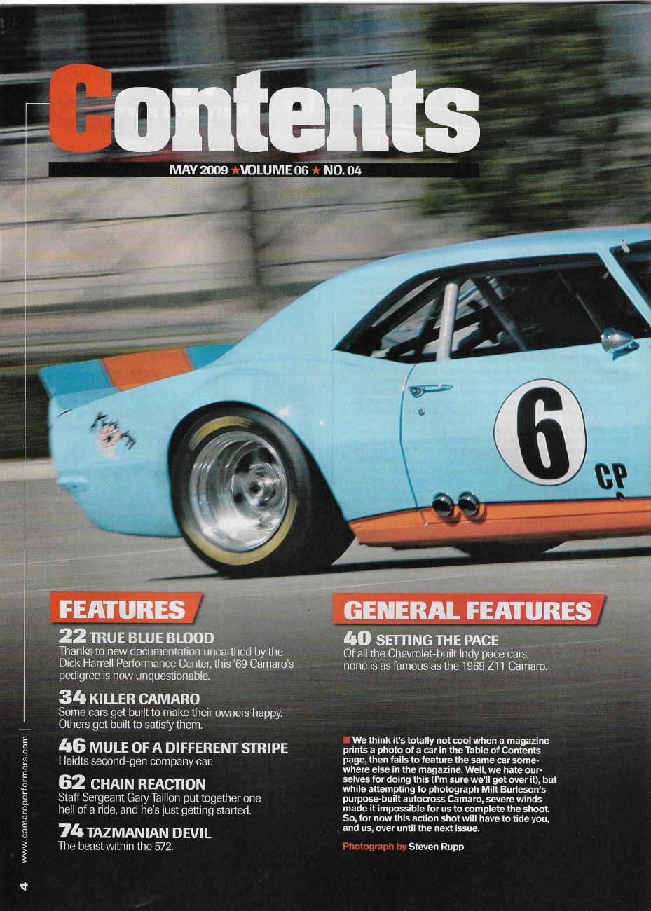 CAMARO PERFORMERS 2009 MAY - 'HISTORY OF THE '69 PACE CAR, 2010 PRODUCTION