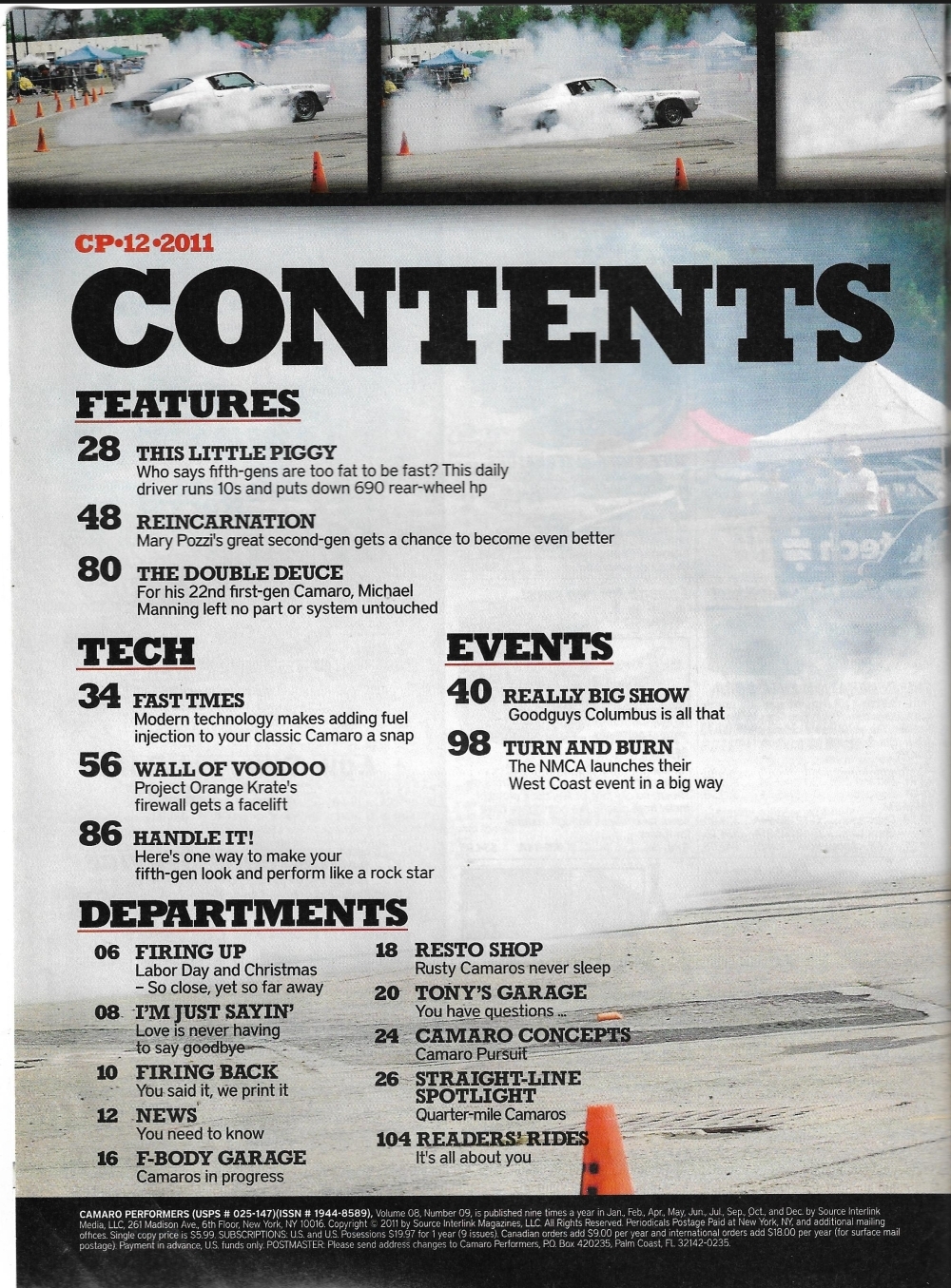 CAMARO PERFORMERS 2011 DEC - DRAG RACING ACTION, FUEL-INJ SM BLK