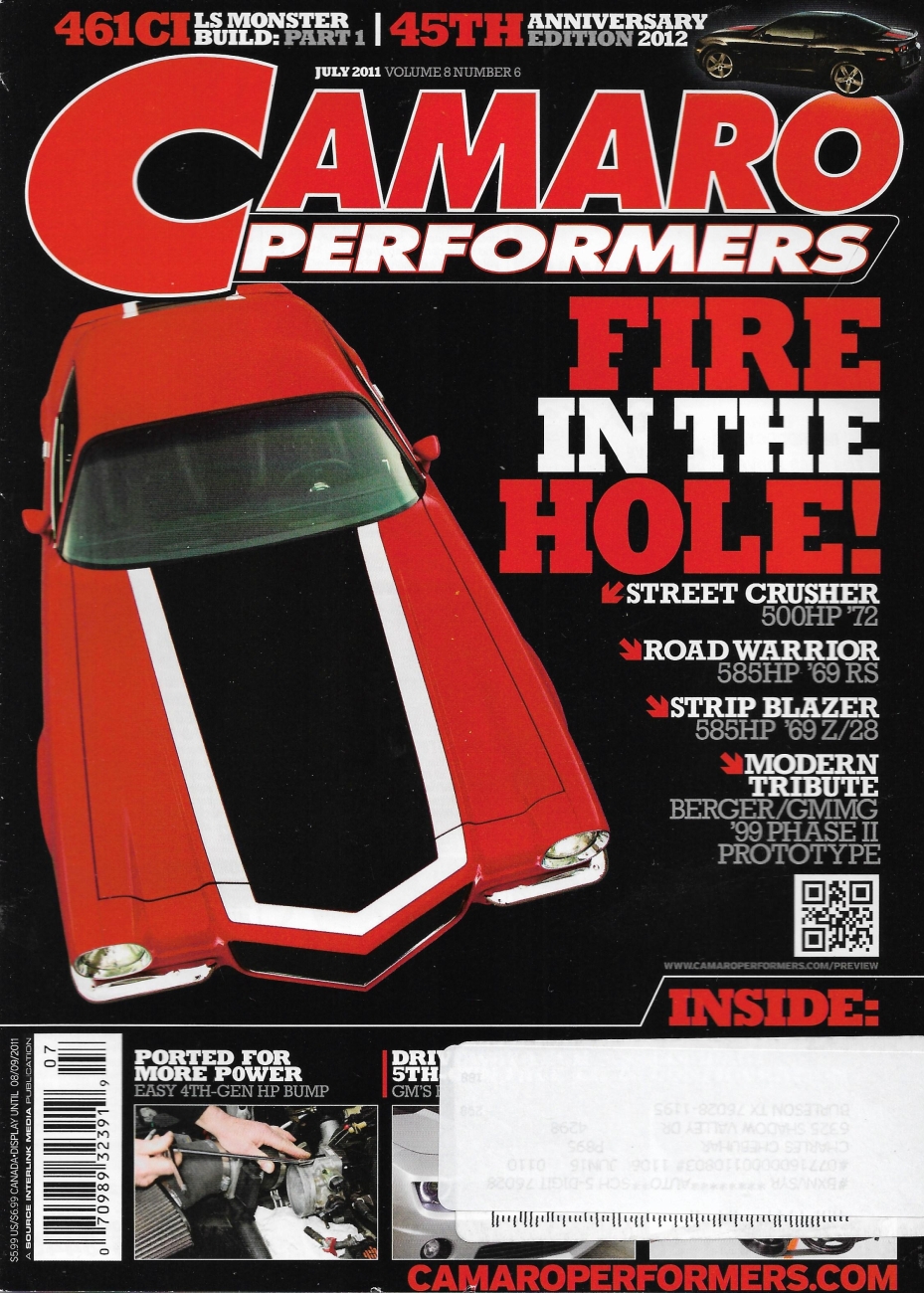 CAMARO PERFORMERS 2011 JULY - '69 Z/28, 585HP '69 RS, 500HP '72, '99 PHASE II