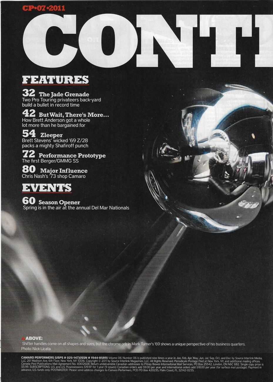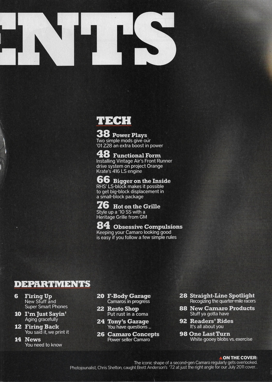 Reviews CAMARO PERFORMERS 2011 JULY - '69 Z/28, 585HP '69 RS, 500HP '72, '99 PHASE II