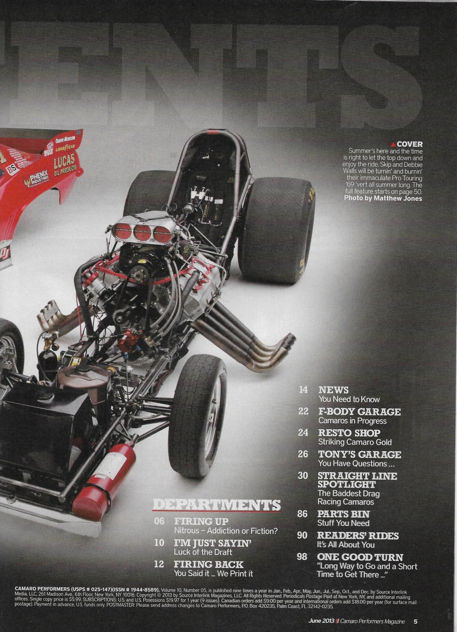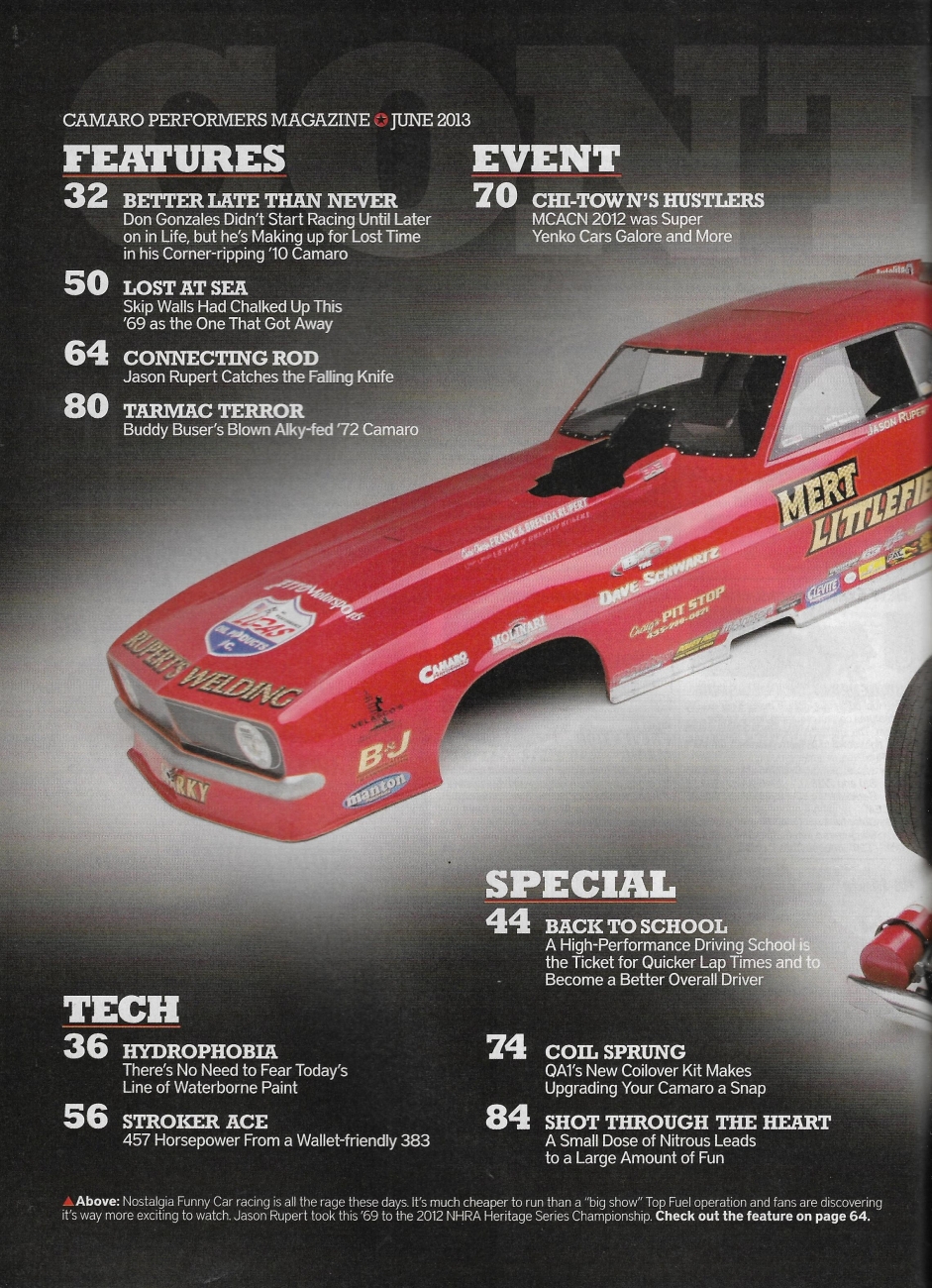 Reviews CAMARO PERFORMERS 2013 JUNE - RUPERT'S NHRA '69 FUNNY, '14 Z/28, NITROUS TEST