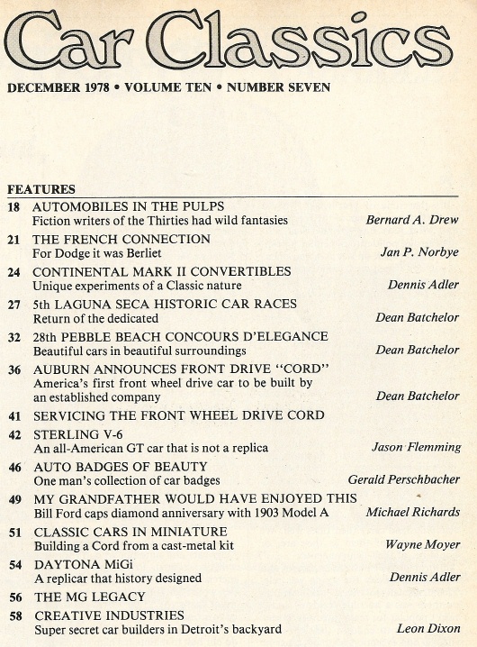 Reviews CAR CLASSICS 1978 DEC - '31 Cord L-29, Sterling V-6, Derham-Continental*