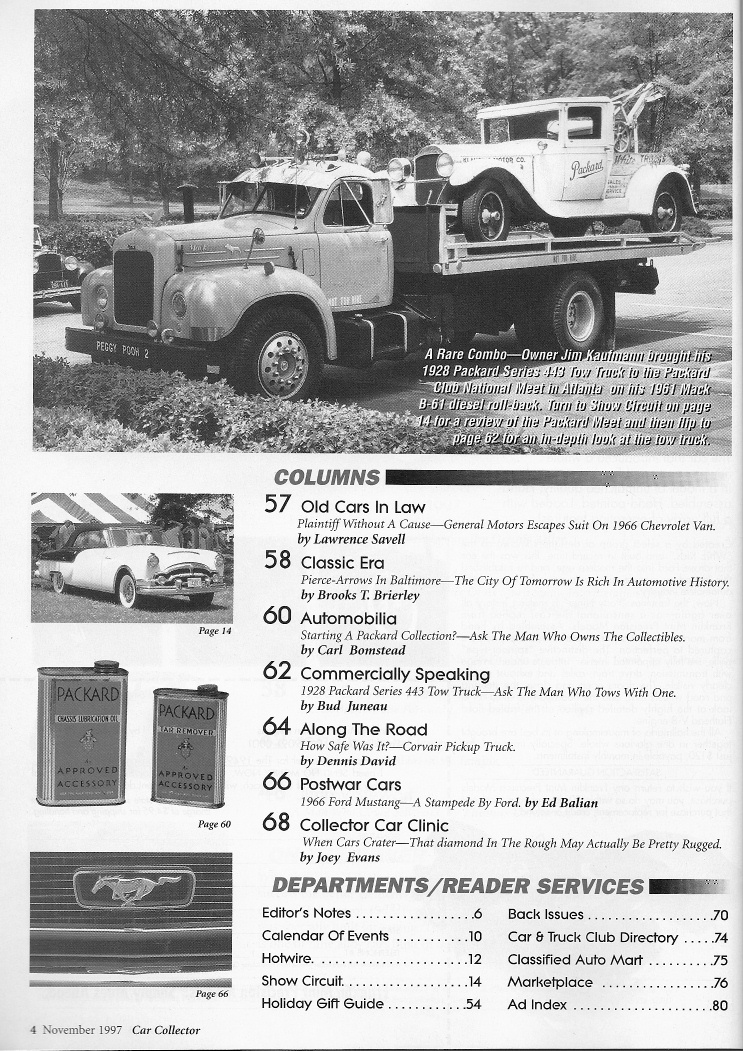 CAR COLLECTOR 1997 NOV -There is no description for this magazine yet. See picture of cover and contents below for details. ![]() ![]() ![]()