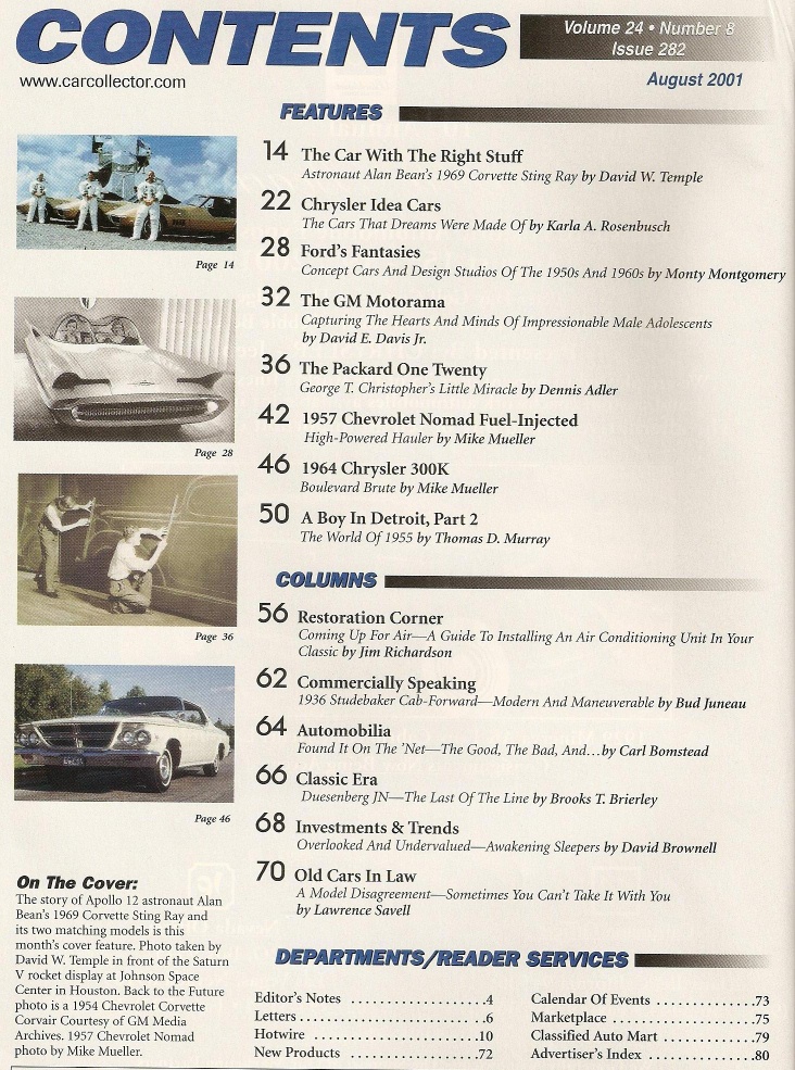 Reviews CAR COLLECTOR 2001 AUG - ASTRO VETTE, DREAM CARS, '57 NOMAD, '64 CHRYSLER 300 K