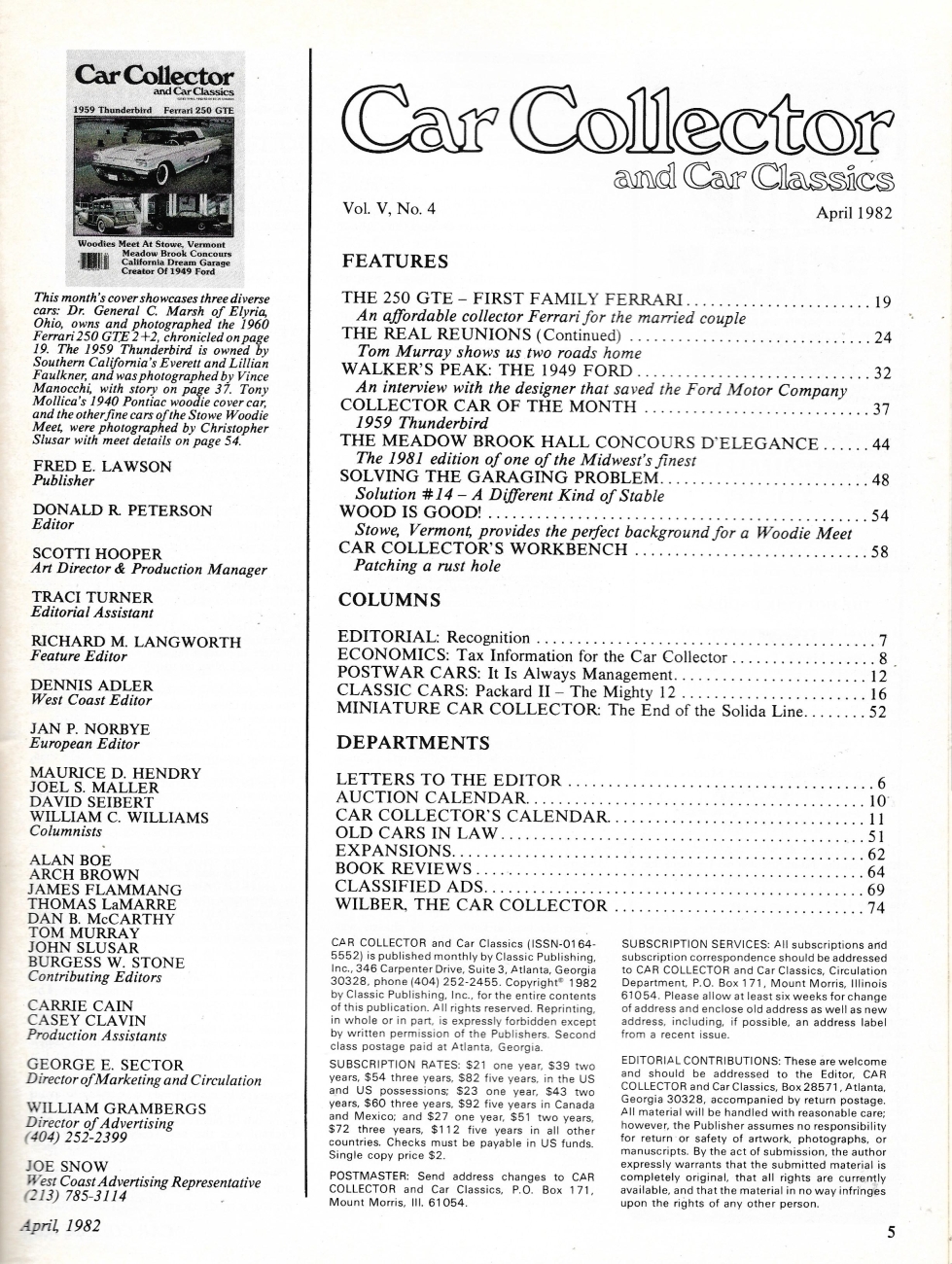 Reviews CAR COLLECTOR & CAR CLASSICS 1982 APR - '59 THUNDERBIRD, FERRARI 250 GTE