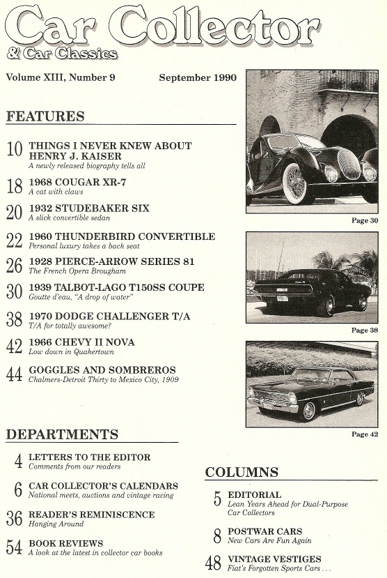 Reviews CAR COLLECTOR & CAR CLASSICS 1990 SEPT - '70 CHALLENGER '66 NOVA,'68 COUGAR XR7