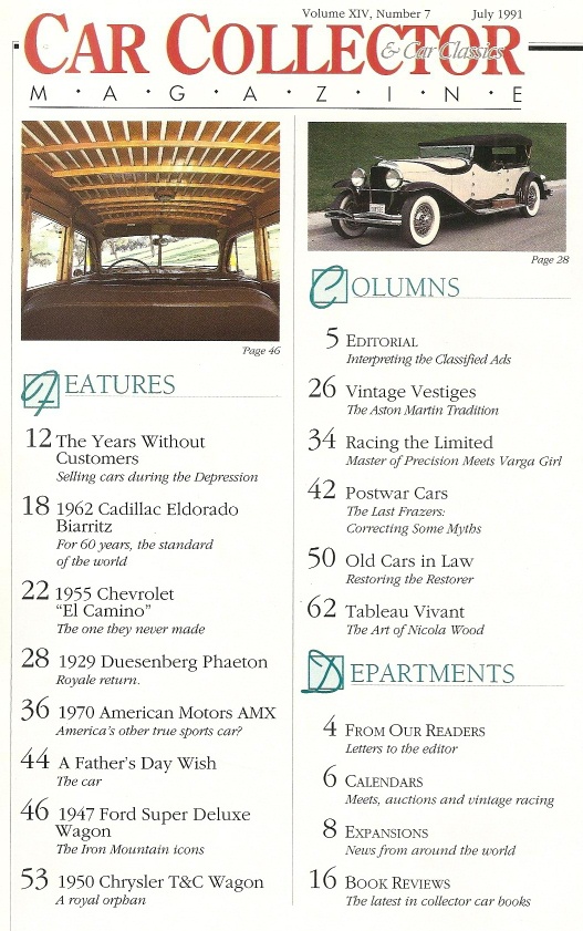 Reviews CAR COLLECTOR & CAR CLASSICS 1991 JULY - '70 AMX,'62 ELDORADO, '47 WOODIE