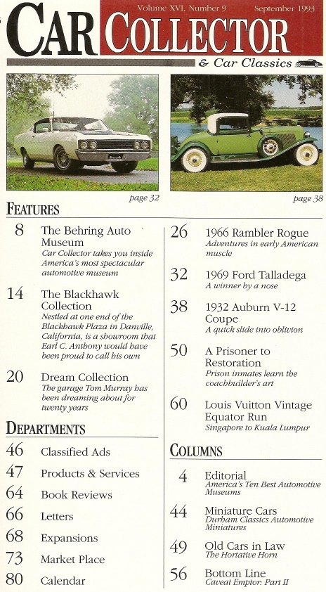Reviews CAR COLLECTOR & CAR CLASSICS 1993 SEPT - 10 BEST AUTOMOBILE MUSEUMS