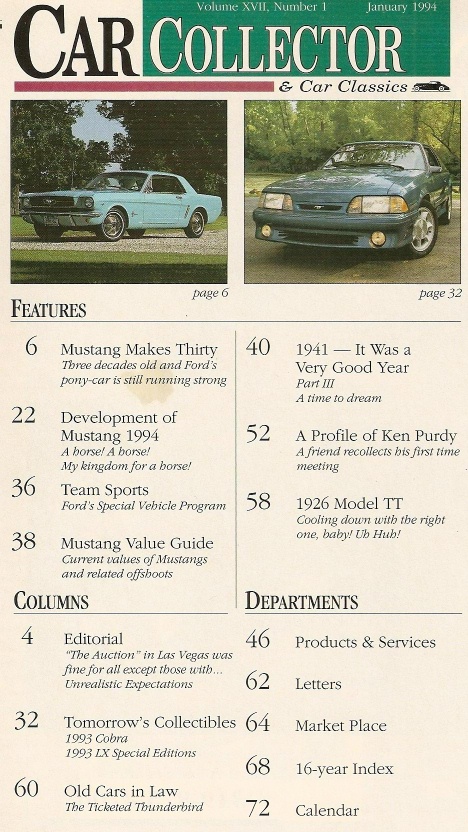 Reviews CAR COLLECTOR & CAR CLASSICS 1994 JAN - MUSTANG COLLECTOR EDITION