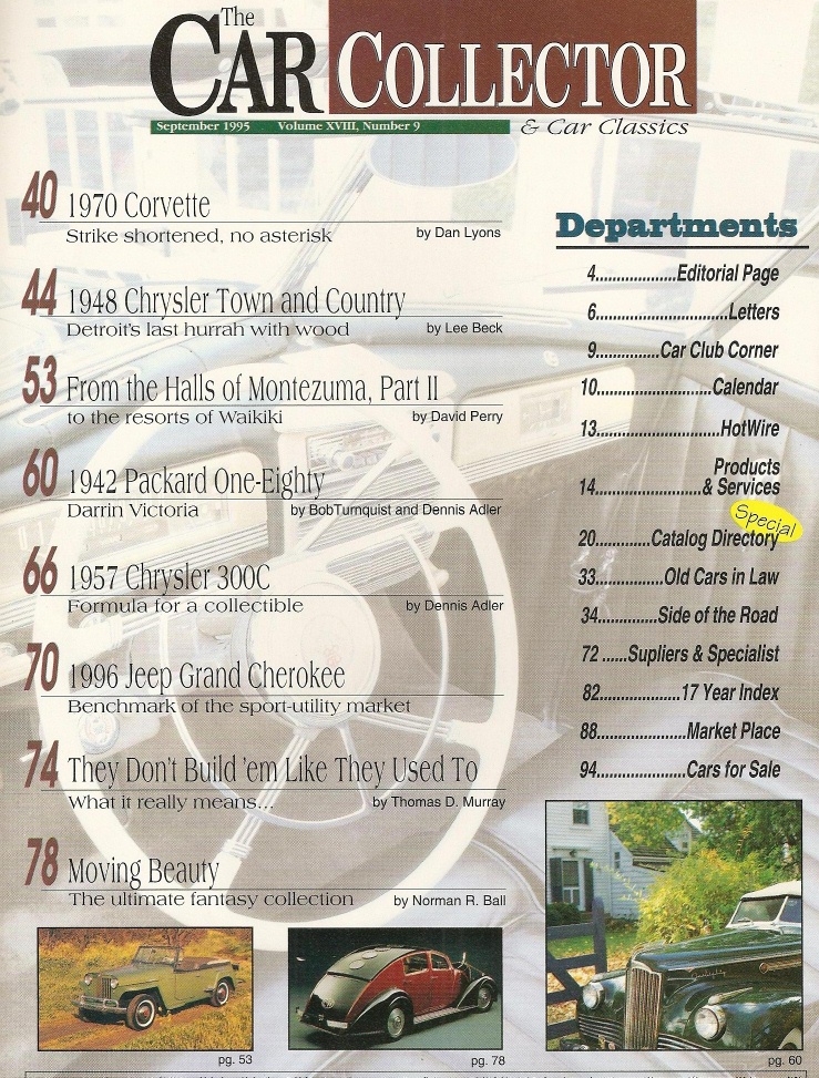 Reviews CAR COLLECTOR & CAR CLASSICS 1995 SEPT - 300C, '70 VETTE, '42 PACKARD DARRIN