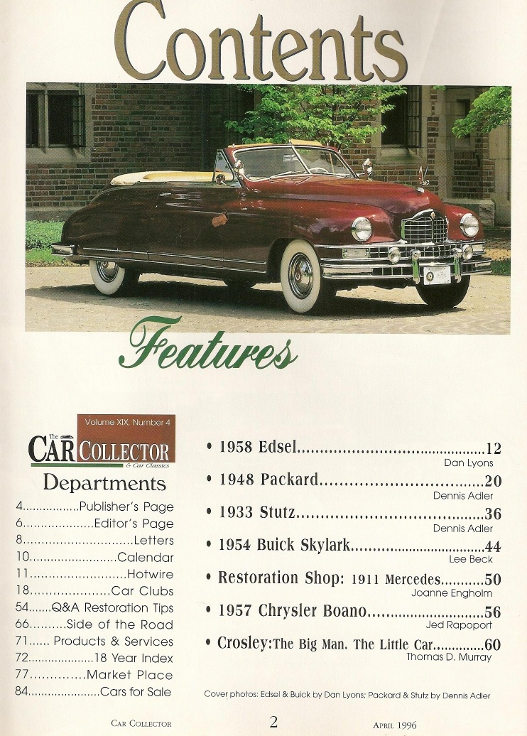 Reviews CAR COLLECTOR & CAR CLASSICS 1996 APR - '54 SKYLARK, '57 CHRYSLER, '58 EDSELS
