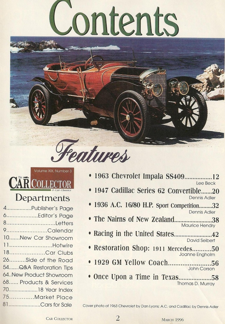 Reviews CAR COLLECTOR & CAR CLASSICS 1996 MAR - CHEVY 409, JAG SS 100, MG TC, A.C. ACE