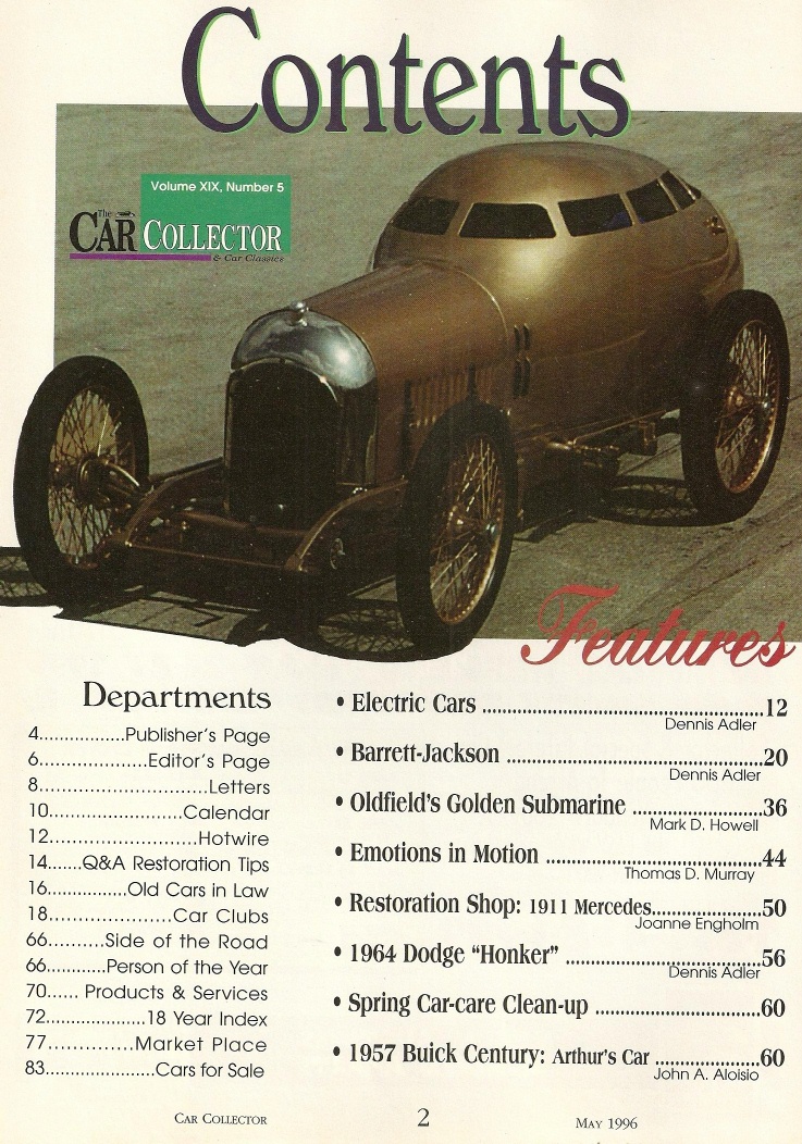 Reviews CAR COLLECTOR & CAR CLASSICS 1996 MAY - '64 DODGE HONKER, '57 CENTURY, ELEC CARS