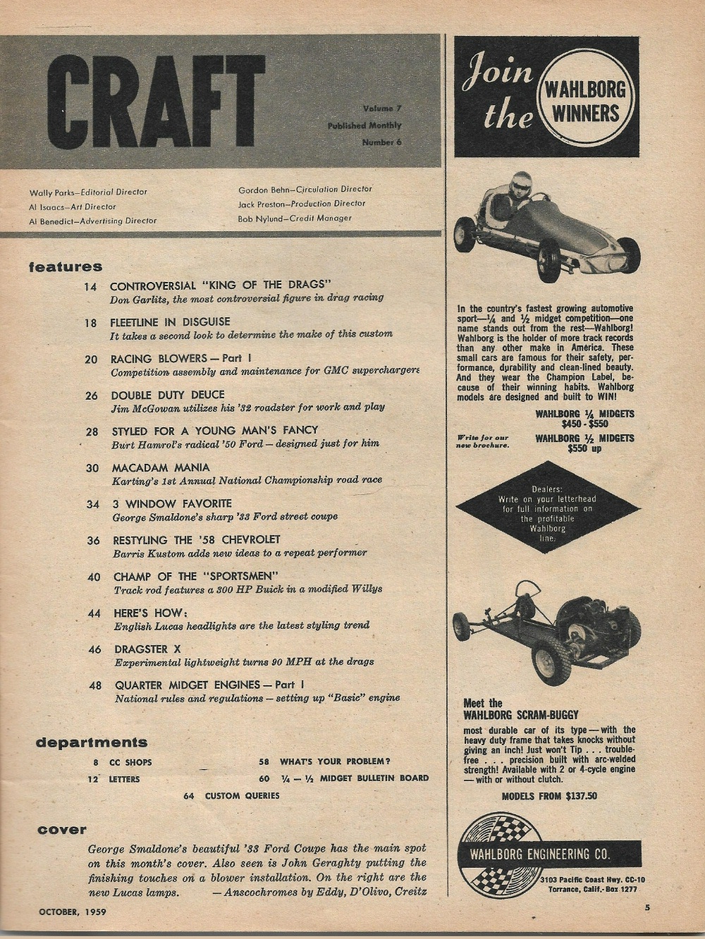 Reviews CAR CRAFT 1959 OCT - BLOWERS, GO-CARTS, '58 CHEV RESTYLE, 1/4 MIDGETS,FLEETLINE*