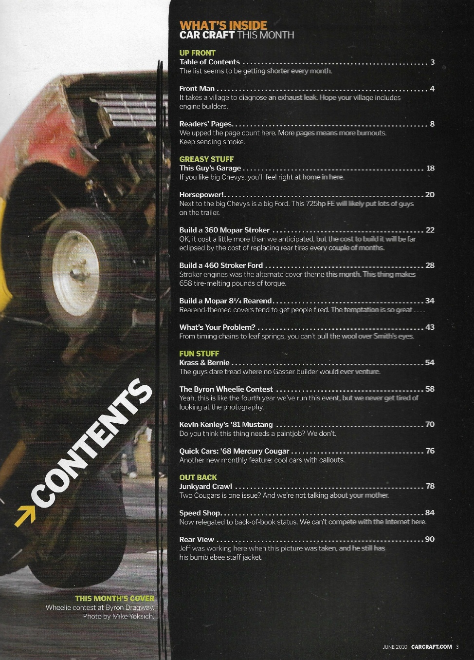 Reviews CAR CRAFT 2010 JUNE - WHEELIES, MOPAR 408" - FORD 557" STROKERS, COUGAR GT-E