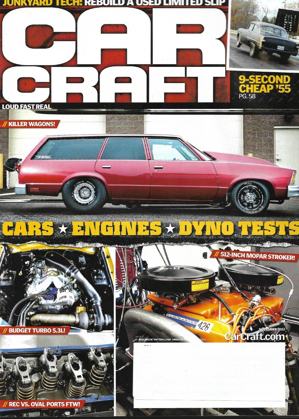 Reviews CAR CRAFT 2012 NOV - 9 SEC '55, KILLER WAGONS, DYNO TESTS, 512 IN MOPAR STROKER