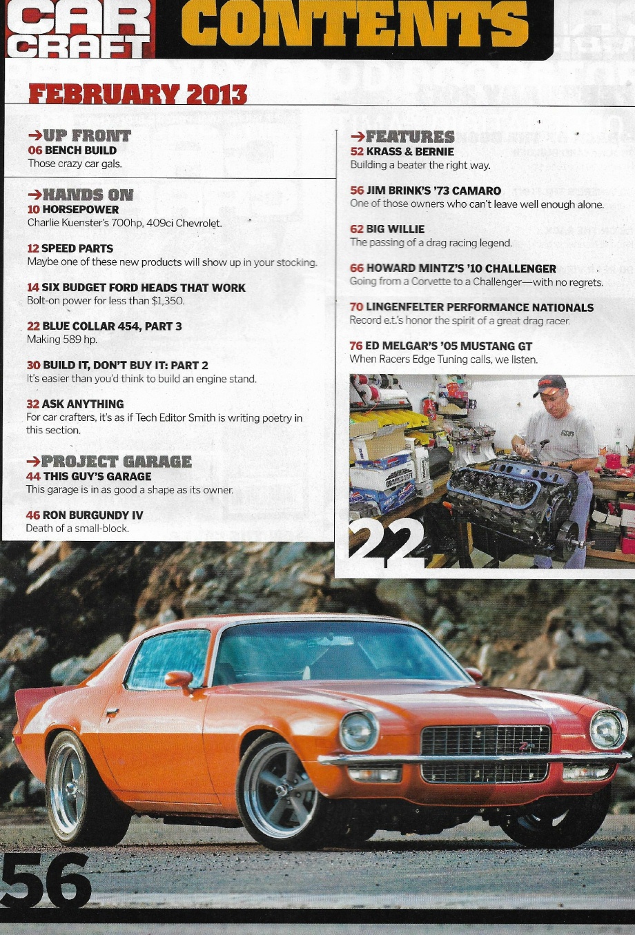 Reviews CAR CRAFT 2013 FEB - MUSTANG & CHALLENGER DRAG, FORD CYL HEAD&INTAKES, CAMAROS