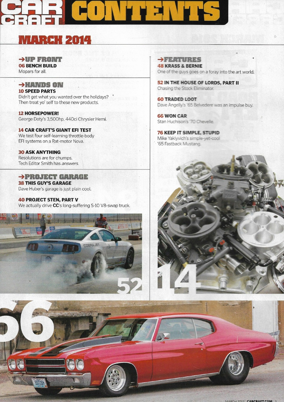 Reviews CAR CRAFT 2014 MAR - ROAD TESTED EFI, INJ CHEVELLE 9'S, DOTY'S CHRYSLER HEMI