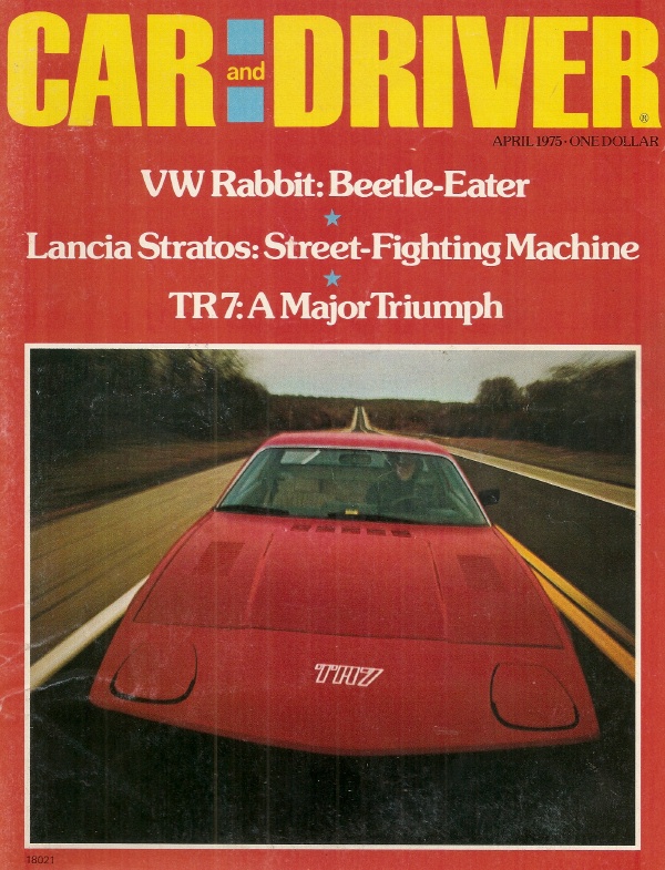 Reviews CAR & DRIVER 1975 APR - LELLA LOMBARDI, TR7, STRATOS