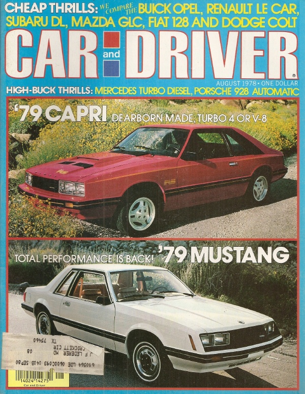 Reviews CAR & DRIVER 1978 AUG - MUSTANG, SAPPORO, PORSCHE 928