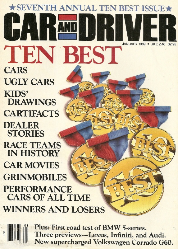 Reviews CAR & DRIVER 1989 JAN - BMW 535I, AUDI V8, LEXUS LS400