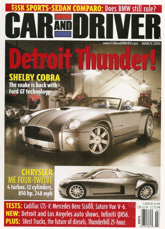CAR & DRIVER 2004 MAR - ME FOUR TWELVE, SHELBY COBRA, CTS-V