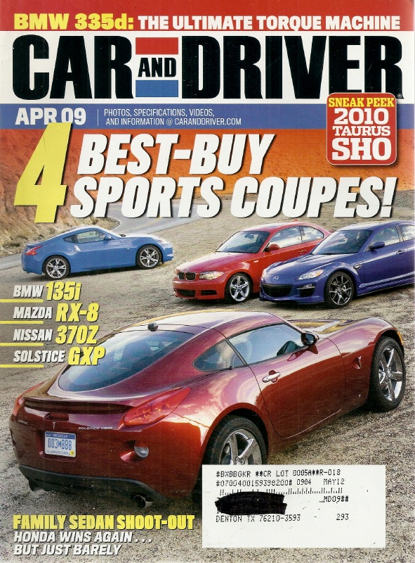 CAR & DRIVER 2009 APR - SPORT COUPE SHOOTOUT, LINGENFELTER G8, NEW CAN AM