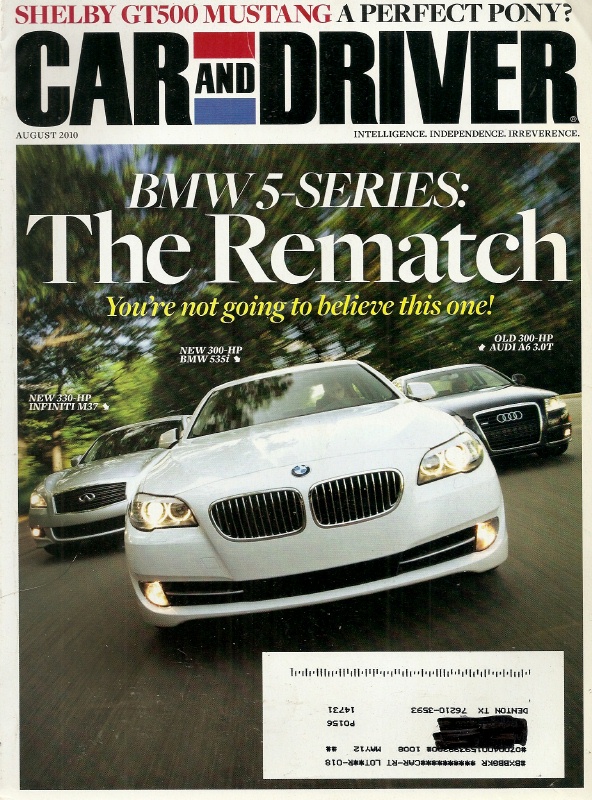 Reviews CAR & DRIVER 2010 AUG - SHELBY GT500, BEST TRACKS, PAUL TRACY, St. JAMES