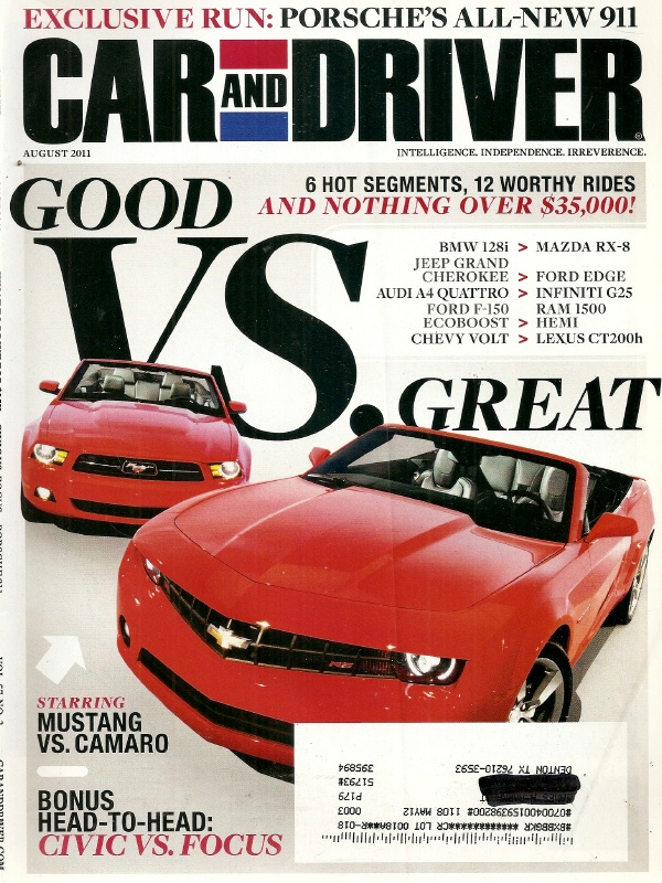 CAR & DRIVER 2011 AUG - NASTY '69 CAMARO, EVORA S, RAM RUNNER, CHARGER R/T