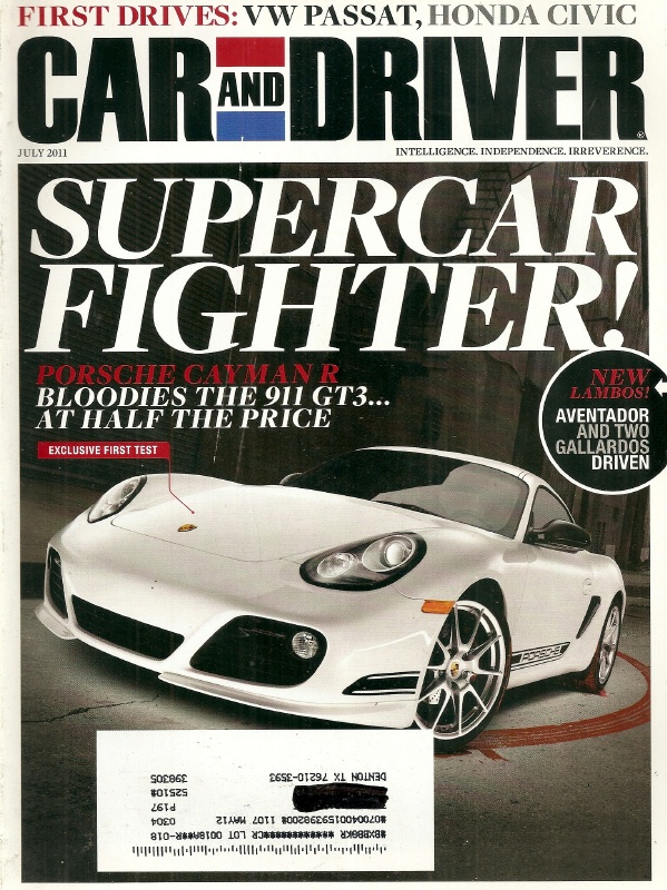 Reviews CAR & DRIVER 2011 JULY - GT3 vs CAYMAN R, AVENTADOR LP700-4, KENETIC SHOCKS