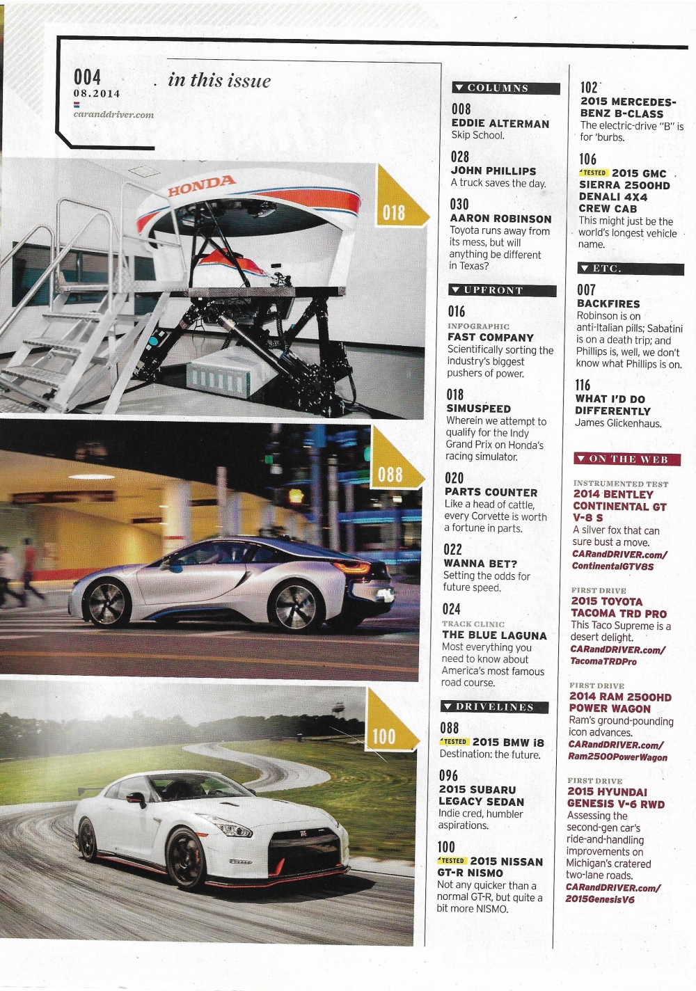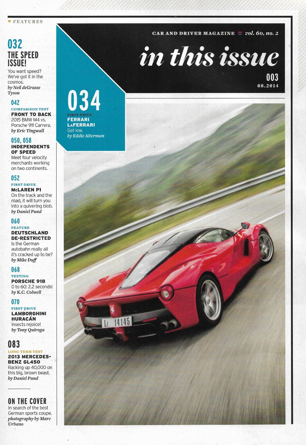 CAR & DRIVER 2014 AUG - MERCEDES-BENZ S36 AMG,BMW M4 v PORSCHE 911, MACLAREN P1