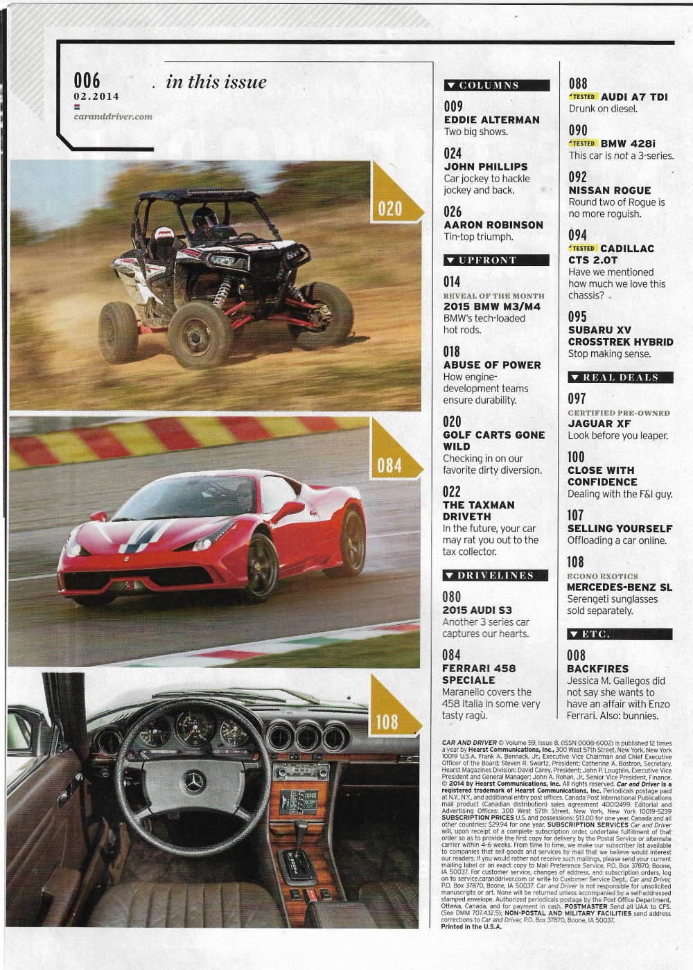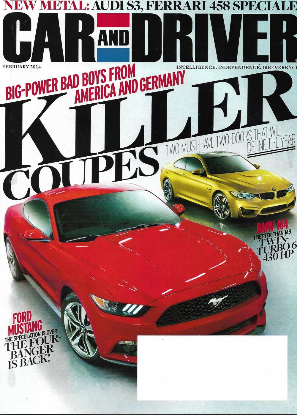 Reviews CAR & DRIVER 2014 FEB - 4 CYL MUSTANG, BMW M4 TWIN TURBO 6, GERMAN COUPES
