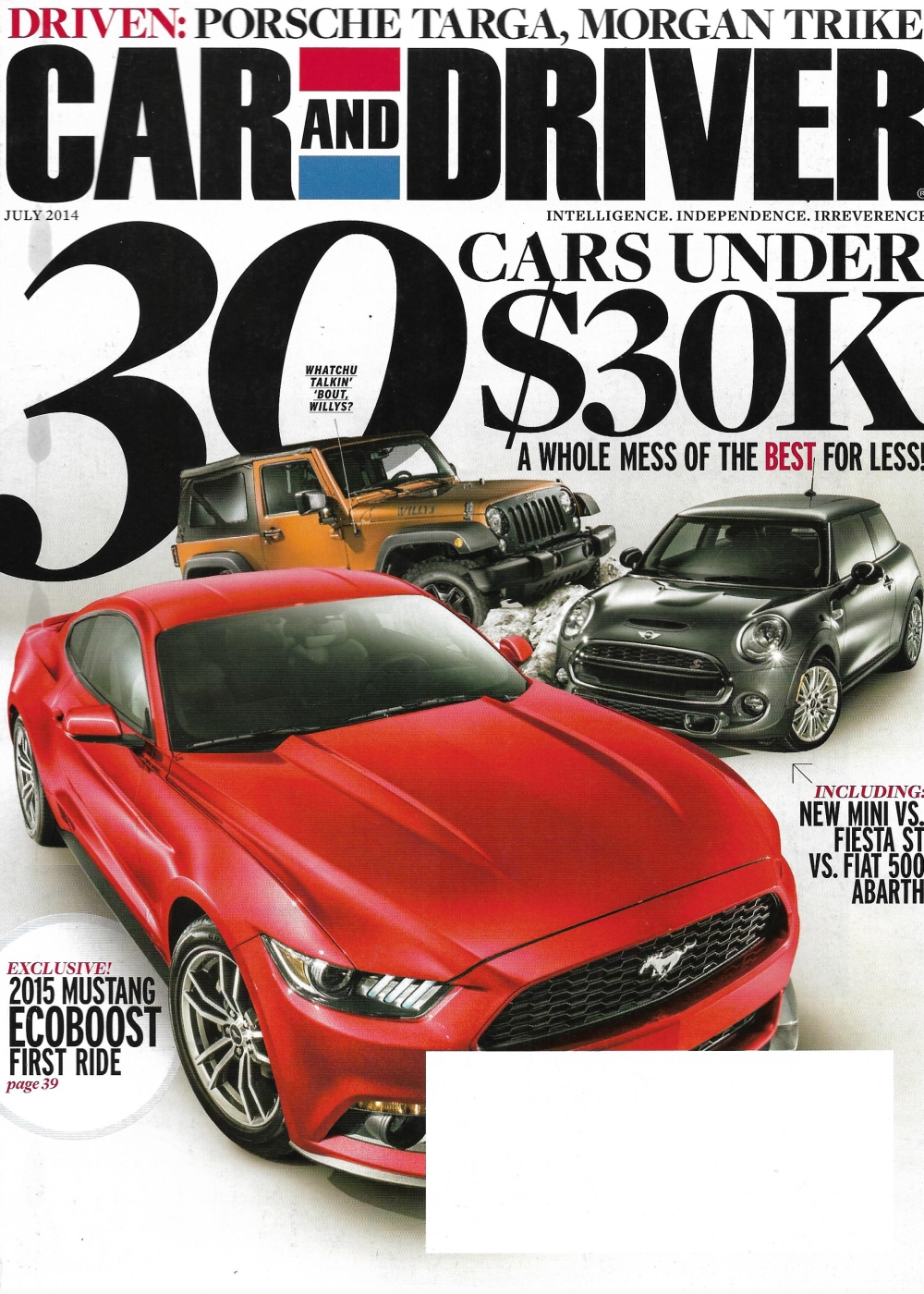 CAR & DRIVER 2014 JULY - '15 MUSTANG ECOBOOST,MINI v FIESTA ST v FIAT 500 ABART
