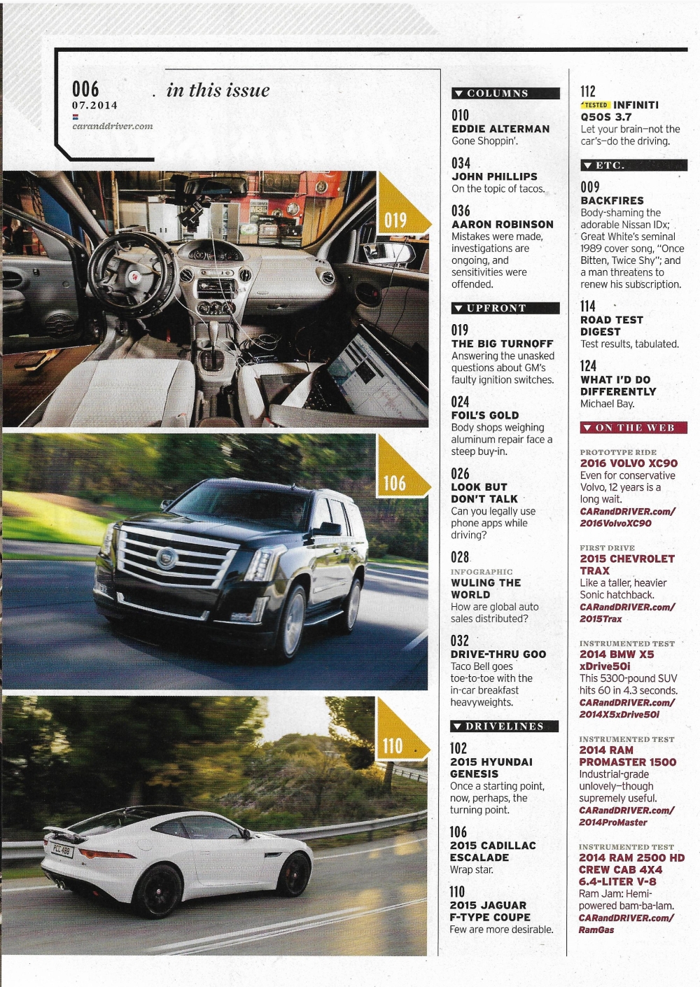 Reviews CAR & DRIVER 2014 JULY - '15 MUSTANG ECOBOOST,MINI v FIESTA ST v FIAT 500 ABART