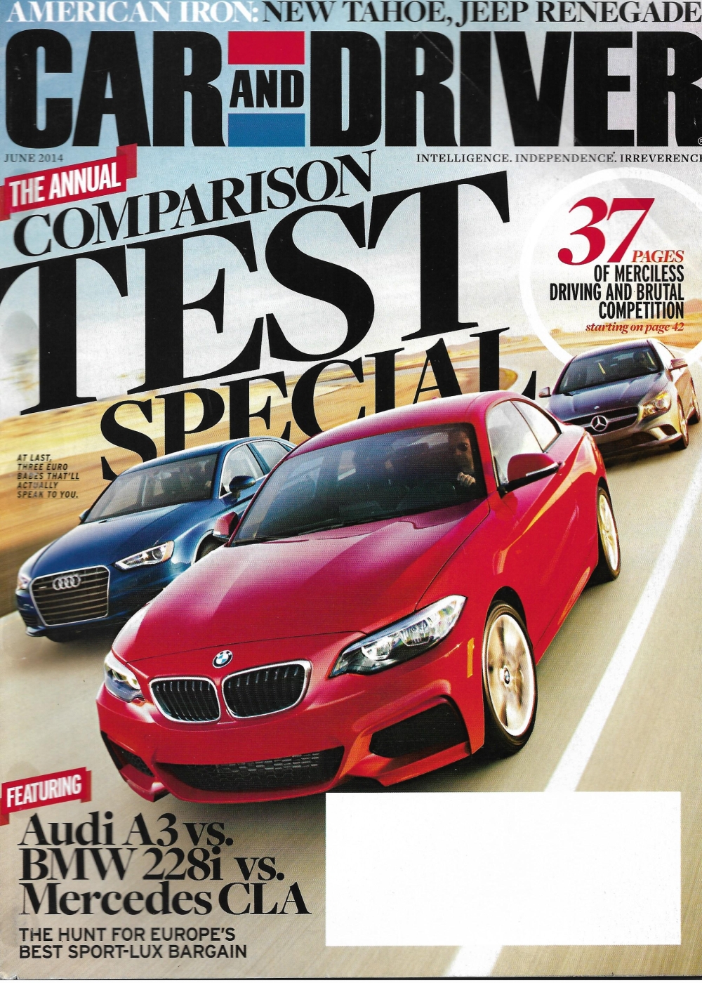 CAR & DRIVER 2014 JUNE - ANNUAL COMP TESTS, AUDI A3 v BMW 228i, MERCEDES CLA