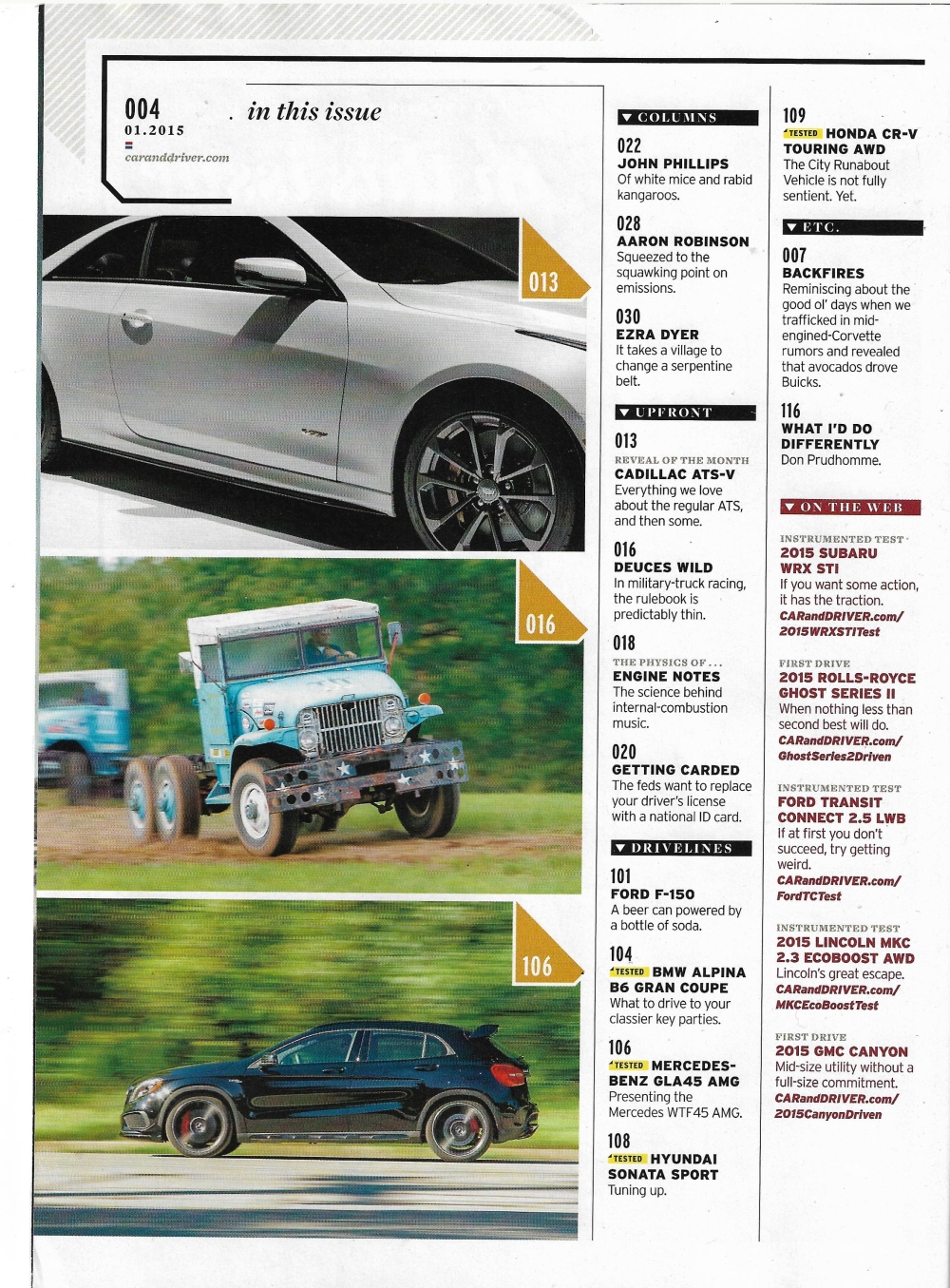Reviews CAR & DRIVER 2015 JAN - FORD F150, CADILLAC ATS-V, MEGA VETTE TEST, TAHOE LTZ