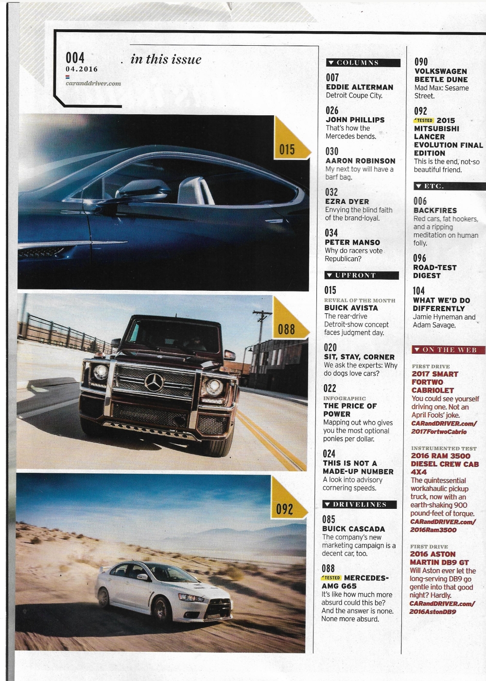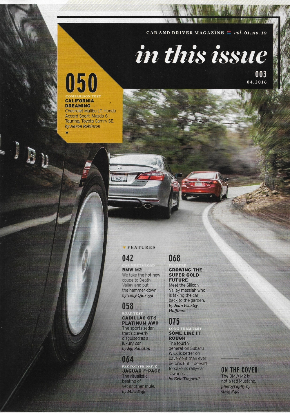 CAR & DRIVER 2016 APR - BMW M2, MALIBU, CADILLAC CT6 PLATNUM AWD, JAGUAR F-PACE