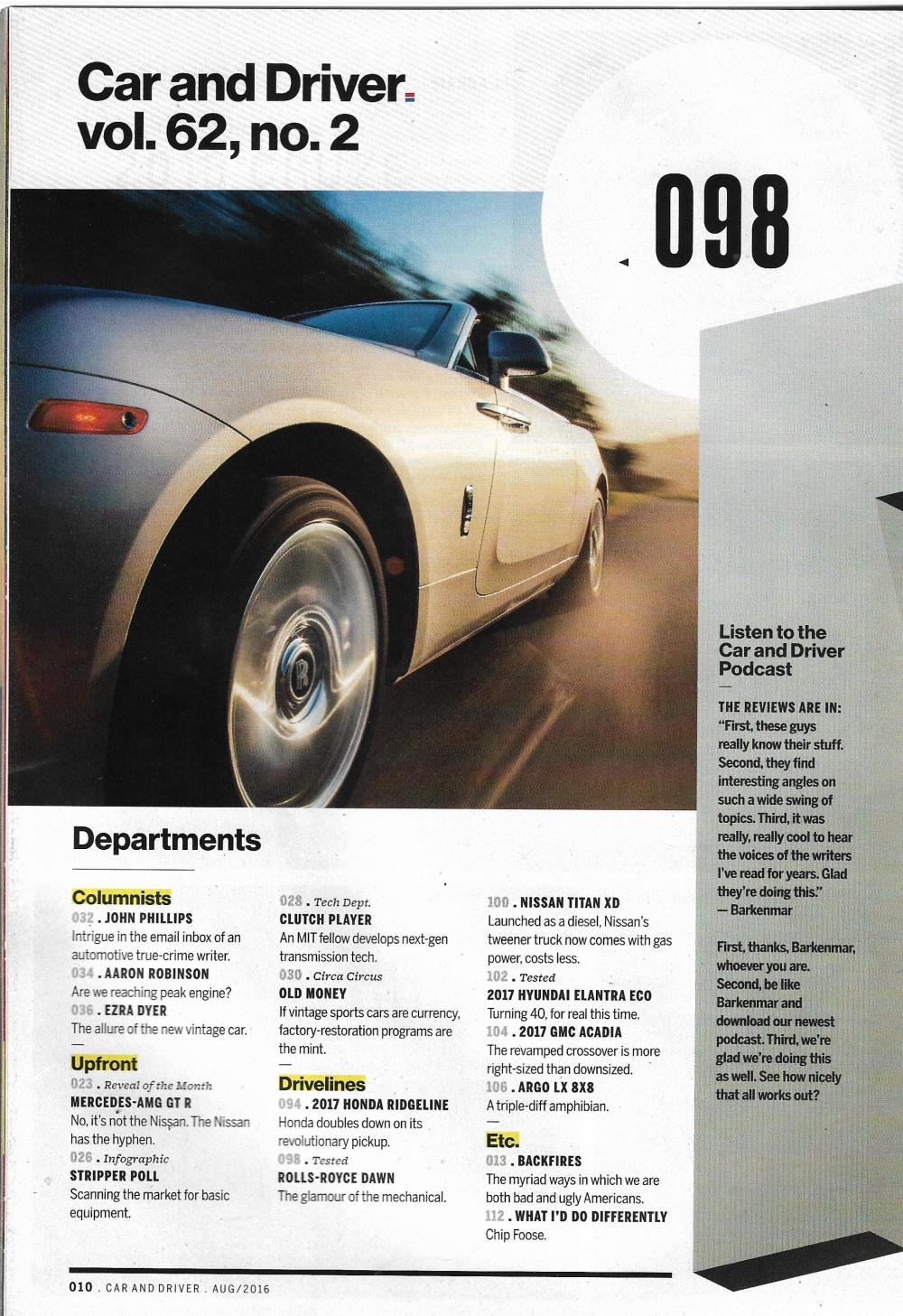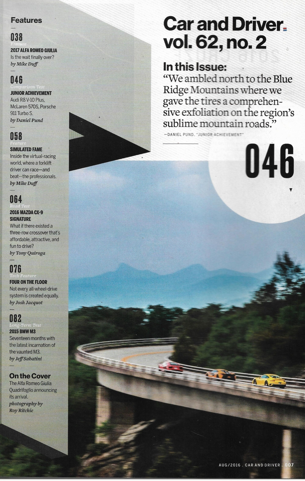 Reviews CAR & DRIVER 2016 AUG - BMW M3, ALFA ROMEO GIULIA, AUDI R8, MCLAREN 570S