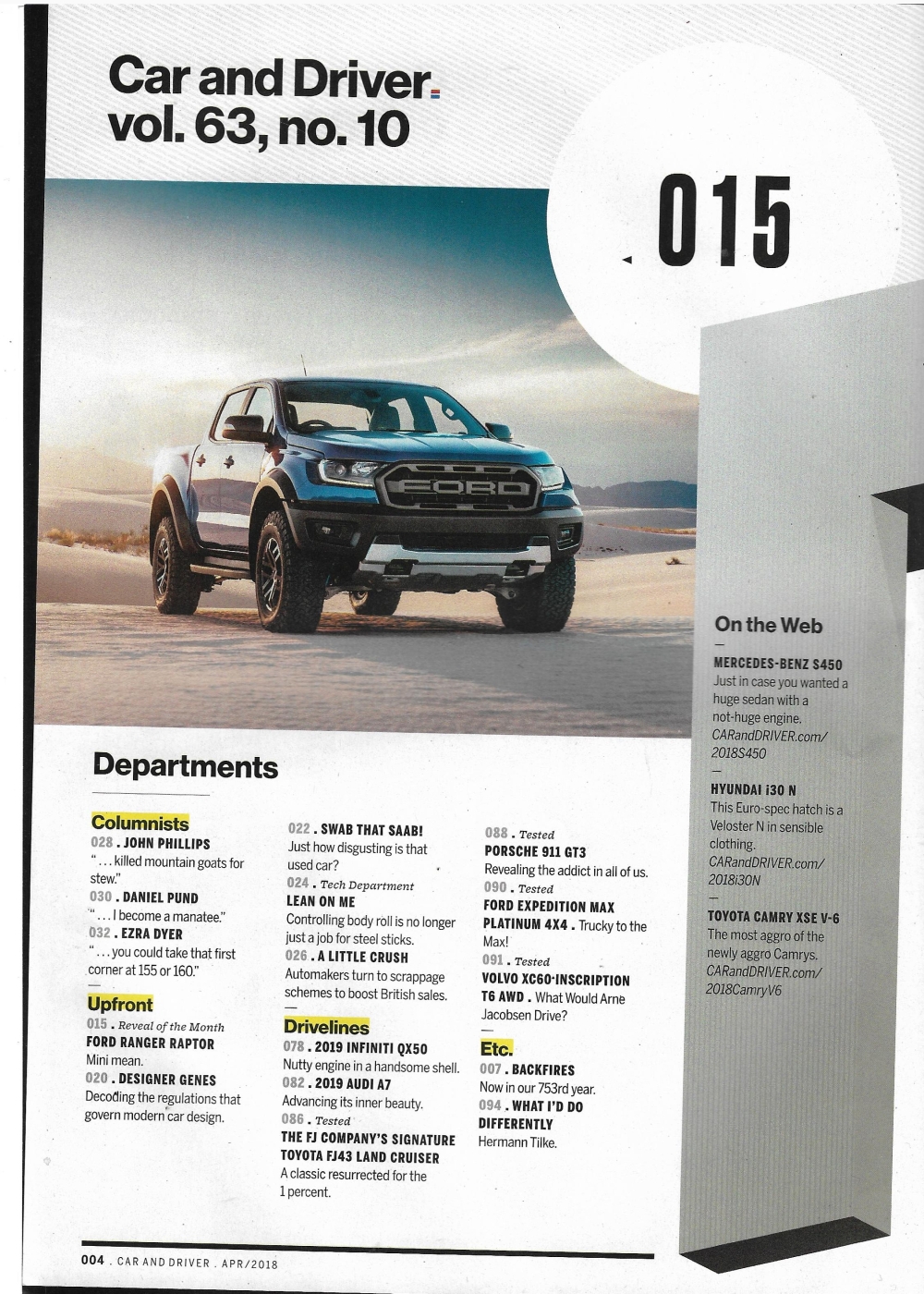 CAR & DRIVER 2018 APR - BMW M5, CADILLAC CTS-V, PORSCHE PANAMERA TURBO, RAPTOR