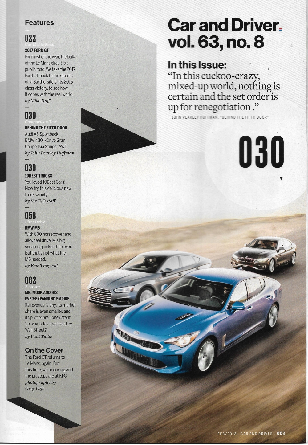 Reviews CAR & DRIVER 2018 FEB - FORD GT, AUDI A5 SPORTBACK, BMW 430i xDRIVE, STINGER